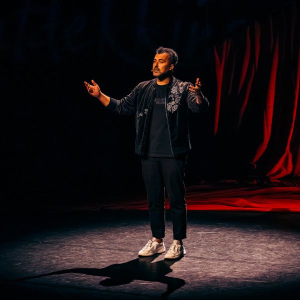 Je bent schrijver, columnist en bekend van tv en podcasts – waarom kies je ervoor om dit verhaal juist in het theater te vertellen?